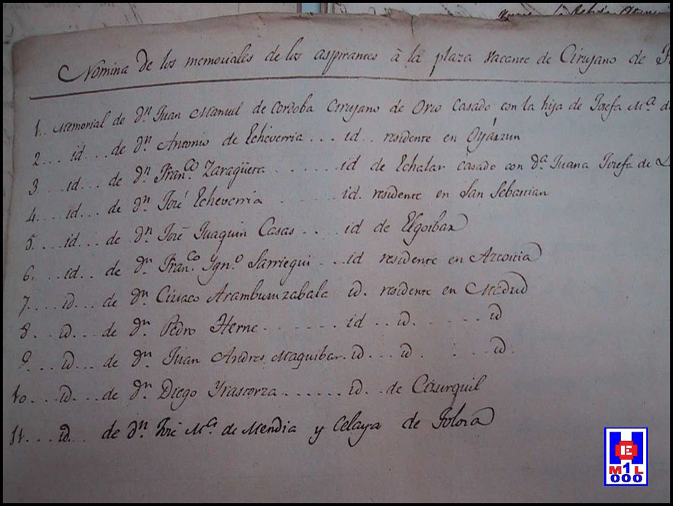 El Ayuntamiento de Hernani pide a los candidatos que presenten sus memoriales antes del día 1 de septiembre de 1826, y entre otras condiciones indica la necesidad de tener “mancebo sangrador”, y poseer la “lengua vascongada” (Archivo Municipal de Hernani; Sección A; Negociado: 14; Libro 1; Expediente: 1).